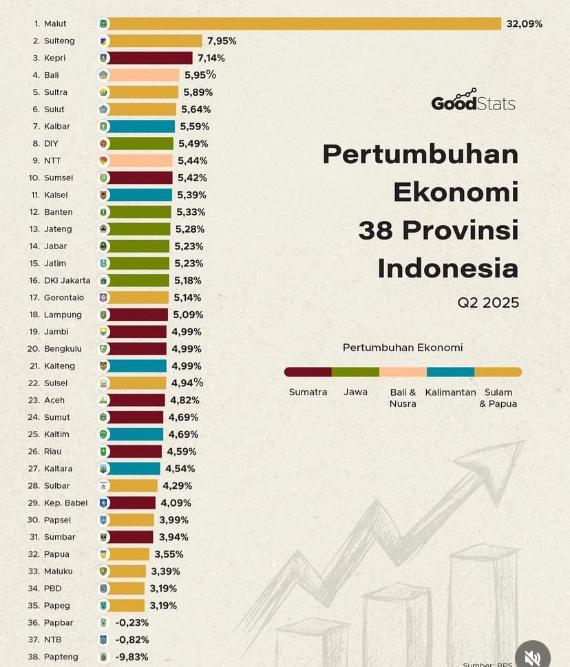 Sementara Maluku Utara masih memimpin dengan pertumbuhan sangat tinggi, yakni 32,09 persen.