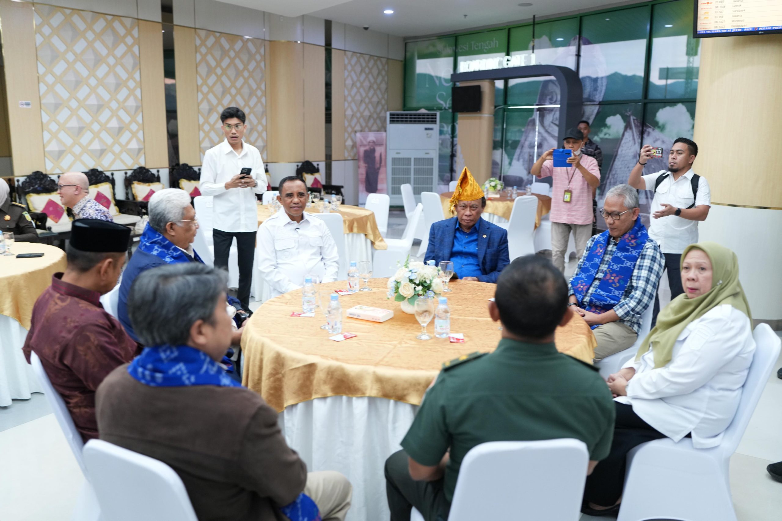Gubernur Sulteng, Anwar Hafid bersama Wagub, dr Reny A Lamadjido menyambut kedatangan rombongan Badan Anggaran Dewan Perwakilan Rakyat Republik Indonesia di Bandara Mutiara SIS Al-Jufri Palu, Rabu (5/11/2025). FOTO : BERANI MEDIA