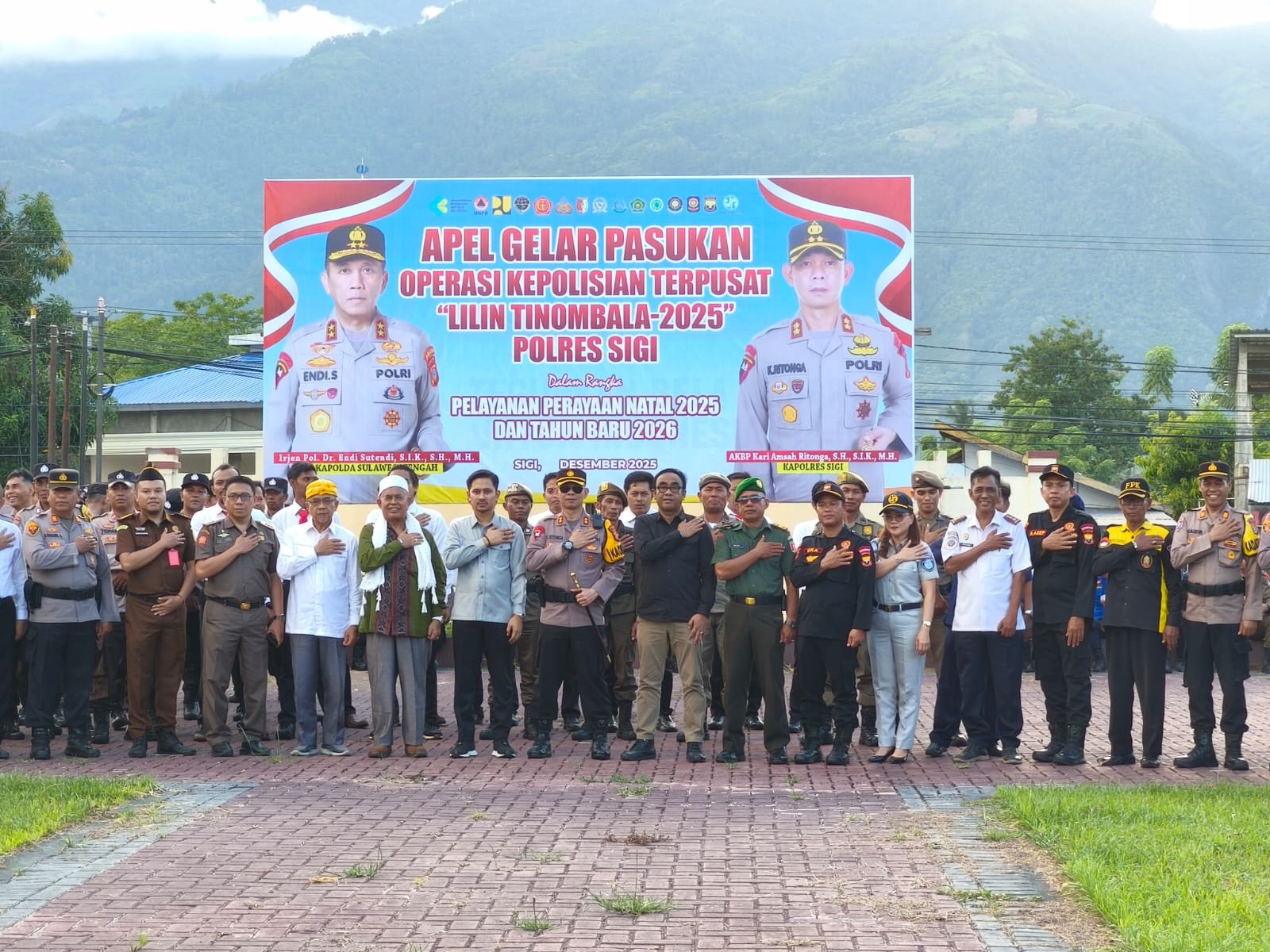 SIGI,- Kepala Kepolisian Resor Sigi, AKBP Kari Amsah Ritonga, S.H., S.I.K., M.H., memimpin Apel Gelar Pasukan Operasi Kepolisian Terpusat Lilin Tinombala 2025 dalam rangka kesiapsiagaan pengamanan Perayaan Natal 2025 dan Tahun Baru 2026.