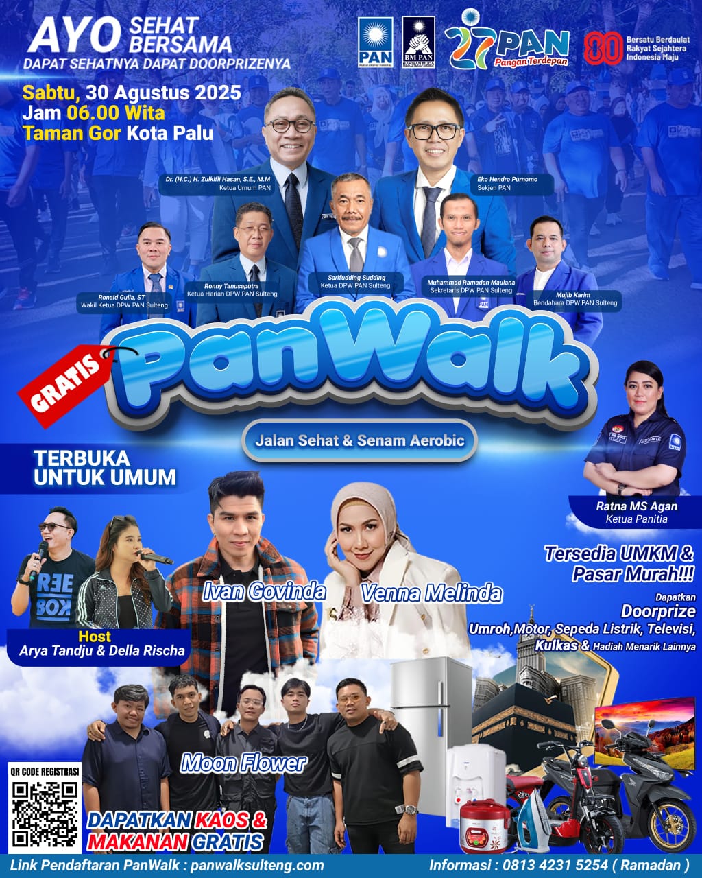 PALU- Dalam rangka memperingati Hari Ulang Tahun (HUT) ke-27 Partai Amanat Nasional (PAN) yang jatuh pada 23 Agustus 2025, Dewan Pimpinan Wilayah (DPW) PAN Sulawesi Tengah (Sulteng) akan menggelar kegiatan jalan santai bertajuk PanWalk di Taman Gor Kota Palu, Sabtu, 30 Agustus 2025 mulai pukul 06.00 WITA.
