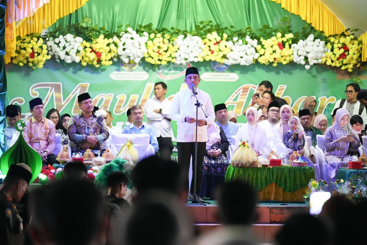 Gubernur Anwar Hafid juga mengingatkan bahwa meneladani Rasulullah tidak cukup hanya melalui perayaan Maulid, tetapi harus diwujudkan dalam kehidupan sehari-hari.