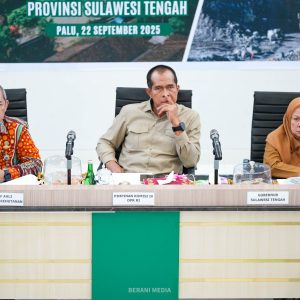 DaerahredaksiSelasa, 23 Sep 2025Selasa, 23 Sep 2025 Wagub Sulteng dan Komisi IV DPR RI Bahas Pengelolaan Hutan Berkelanjutan PALU,- Wakil Gubernur Sulawesi Tengah, dr. Reny A. Lamadjido, Sp.PK., M.Kes., bersama Komisi IV DPR