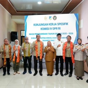 Daerah, ParlemenredaksiRabu, 24 Sep 2025Rabu, 24 Sep 2025 Terima Kunker Komisi IV DPR RI, Wagub Tegaskan Dukungan Penguatan Balai Karantina Sulteng PALU,- Wakil Gubernur Sulawesi Tengah, dr. Reny A. Lamadjido, Sp.PK., M.Kes., bersama jajaran Balai Karantina